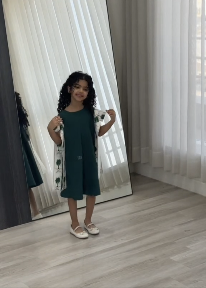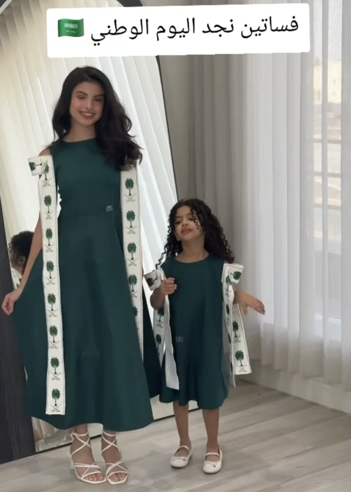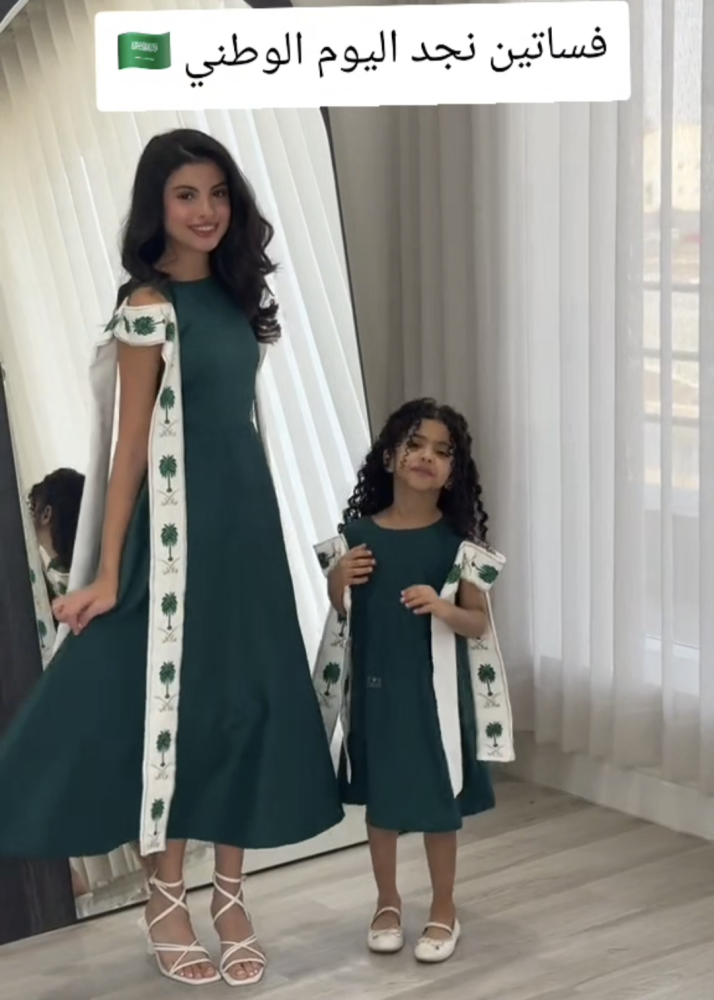 فستان اليوم الوطني اخضر بتشكيله انيقه وحصريه